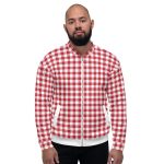 Be the first to review “Mens Bomber Jacket / Buffalo Plaid Red And White Stripe – S1”