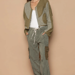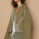This top is crafted in a V-neckline with long sleeves and a regular fit. The zip-up design adds functionality and style to the garment. Made from quilted knit fabric, this top provides warmth and a cozy texture. The viding detailing adds a unique touch to the design, while the front pockets offer convenience and a casual vibe. The patched knit fabric further enhances the visual interest of the top, creating a modern and dynamic look.